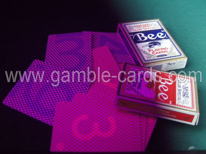 Би игральные карты с лампами специально разработаны для впечатляющие результаты ! Карты обычно имеют пчелиный заднего конца , так что покрытие каждой пластины только частично показано четко видны. Тем не менее, обратно бумаги очень регулярные алмазы шаблон и низкий профиль по сравнению с другими конструкциями назад,«снизу- дилинг " и делает другие формы ручной ловкости.